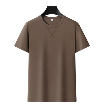 Camiseta informal de manga corta con cuello microancho para hombre, camiseta de moda de Color sólido para jóvenes, 180 gramos de peso de tela, ajuste holgado agradable a la piel