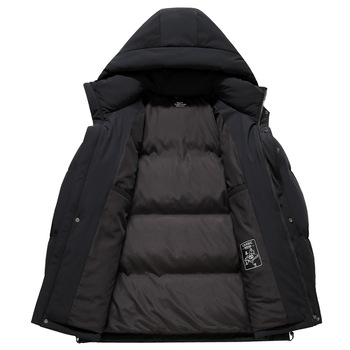 Chaqueta de lona de invierno para hombre diseño grueso con capucha cierre de cremallera a prueba de viento cálido ligero Casual Logo frontal