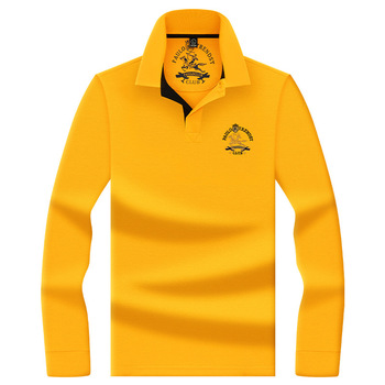 Camiseta informal de manga larga para hombre, camiseta polo bordada para Pony Mark, patrón sólido, camiseta con solapa de algodón con cuentas hexagonales