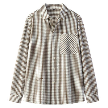 Camisa a cuadros de manga larga informal Retro de alta calidad para hombre, tejido de Otoño de mediana edad de negocios a la moda