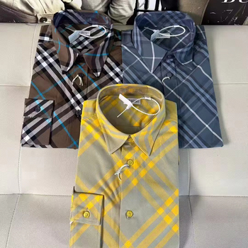 เสื้อเชิ้ตลำลองแขนยาวลายสก๊อตสำหรับผู้ชายหรูหราระดับไฮเอนด์สไตล์ยุโรปธุรกิจผ้าทอสำหรับวัยกลางคน